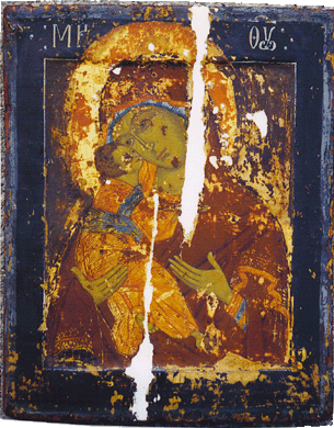 RESTORATION - РЕСТАВРАЦИЯ the Icon Mother of God "Odigitria” oil on wood икона Богородица "ОДИГИТРИЯ" доска, масло 12 x 9" (30.5x23.5cm) XX c 2008 (USA)