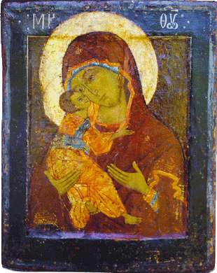 the Icon Mother of God "VLADIMIRSKAYA" egg tempera on wood икона Богородица "ВЛАДИМИРСКАЯ" доска, яичная темпера 12x10,5" (31x27cm) XVI c 1999 (USA)