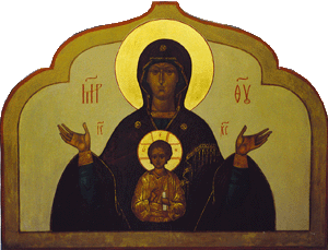 the Icon Mother of God "Znamenie” egg tempera on wood икона Богородица "ЗНАМЕНИЕ" доска, яичная темпера 36 x 45" (92 х 114 cm) XX c 1998 (USA, Mahopac)