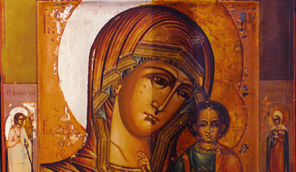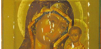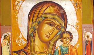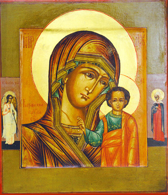Painter- Restorer, Iconographer & artist Ekaterina Piskareva the Icon Mother of God "KAZANSKAYA" egg tempera on wood икона Богородица "КАЗАНСКАЯ" доска, яичная темпера 11 х 9.5" (28 х 24 cm) VIII c 2000 (USA)