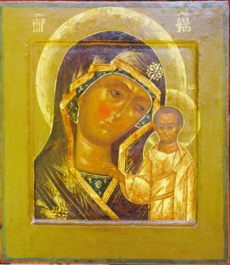 the Icon Mother of God "KAZANSKAYA" egg tempera on wood икона Богородица "КАЗАНСКАЯ" доска, яичная темпера 12 х 9.5" (30 х 24 cm) XIX 2000 (USA)