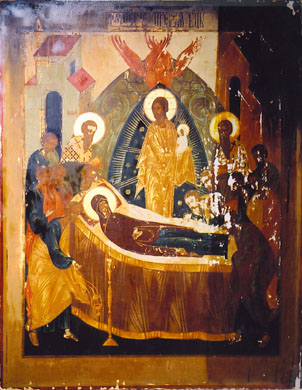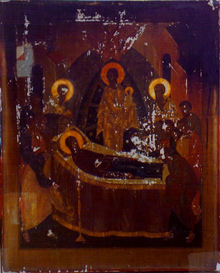 the Icon Mother of God "assumption"oil on wood икона Богородицы "УСПЕНИЕ" доска, масло 34.5 x 27" (88 х 69 cm) XIX c 1996 (Greece)