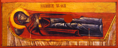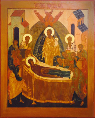 the Icon Mother of God "assumption"egg tempera on wood икона Богородицы "УСПЕНИЕ"доска, яичная темпера 34.5 x 27" (88 х 69 cm) XX c 2003 (USA, Mahopac) Painter- Restorer, Iconographer & artist Ekaterina Piskareva
