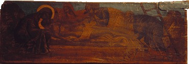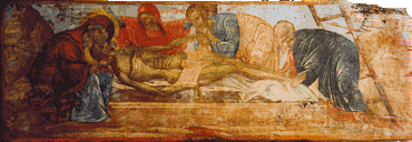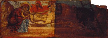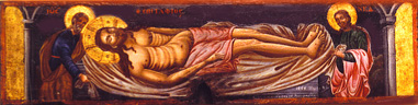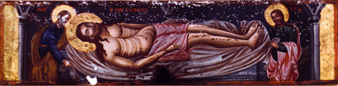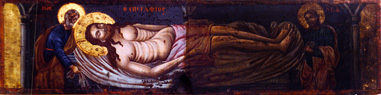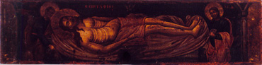 the Ikon "Burial" oil on wood икона "Положение во гроб" доска, масло 27.5x10" (70x25cm) XVIIIc 1996 (Greece)