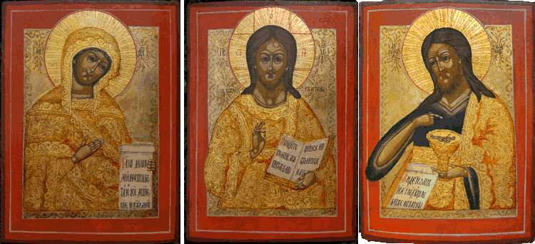 Painter- Restorer, Iconographer & artist Ekaterina Piskareva “Deisus” Silver gilding, golden varnish, egg tempera on wood ДЕИСУС доска, яичная темпера, серебро, золотистый лак 2008 (USA)