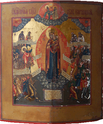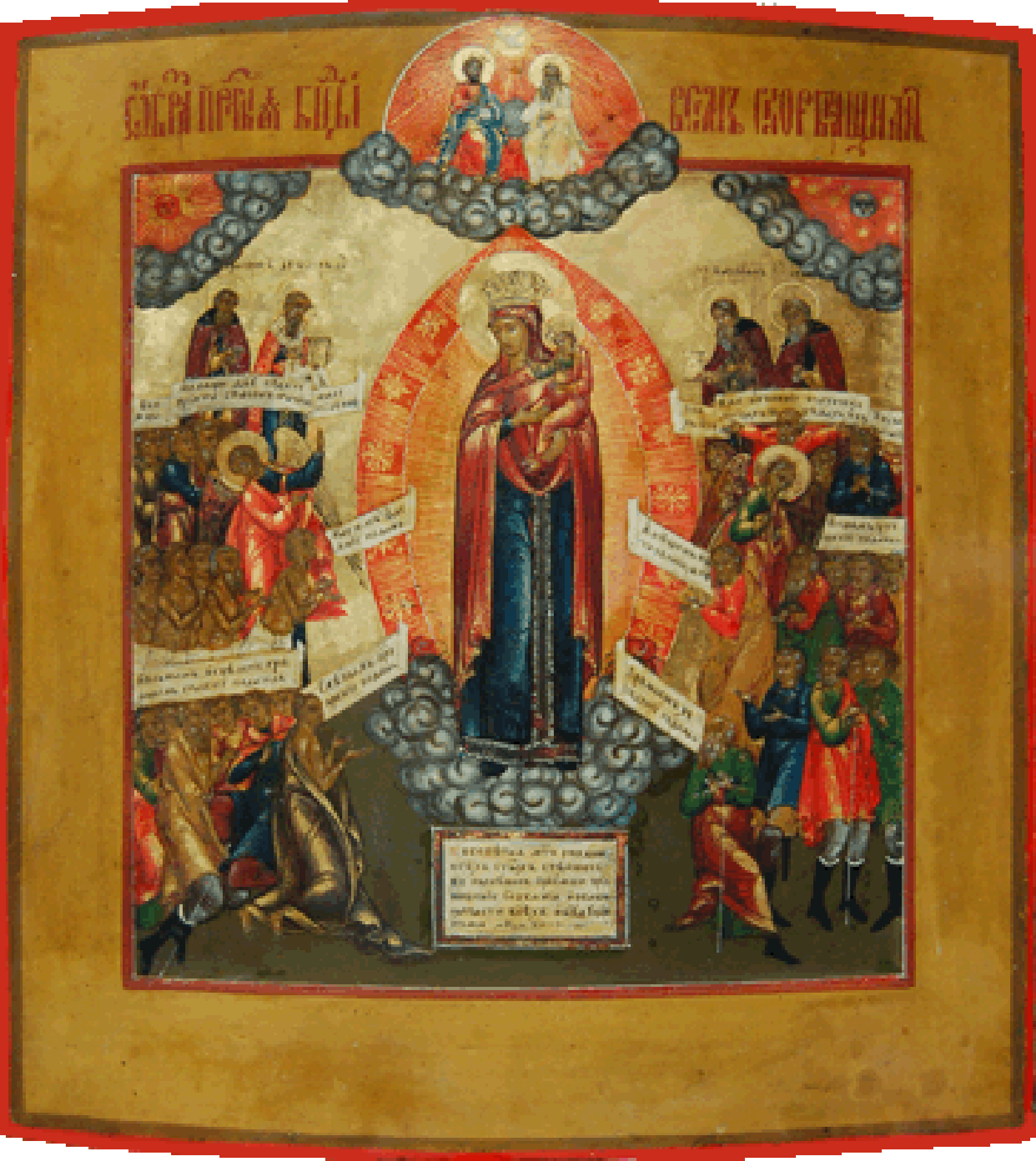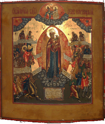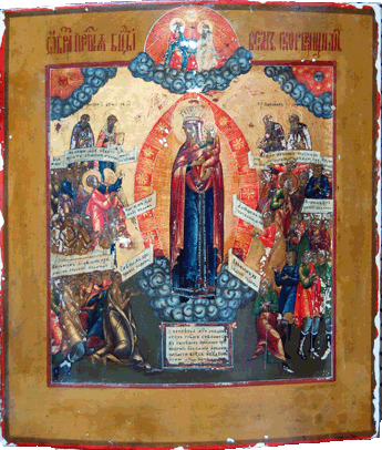RESTORATION - РЕСТАВРАЦИЯ the Ikon of "Our Lady of all Sorrows" egg tempera on wood икона Богородица "Всех Скорбящих Радосте" доска, яичная темпера 14x12" (35x31cm) XIXc 2008 (USA)