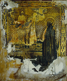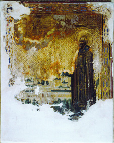 The Ikon “St. Savva Storozhevsky” egg tempera on wood Икона "Св. Савва Сторожевский" доска, яичная темпера 7 x 5" (18x12cm) XXc 1996 (Russia)