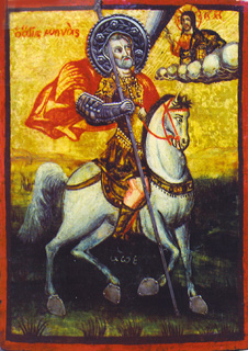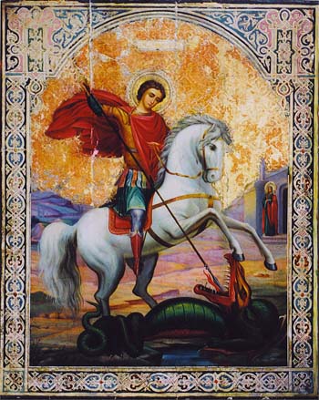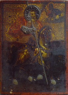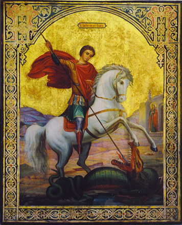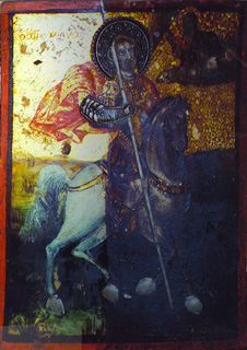 The Ikon “George the Great Martyr” egg tempera on wood Икона "Св. Георгий Победоносец" доска, яичная темпера 7 x 5" (18 x 12cm) XXc 1996 (Russia)