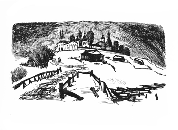 GRAPHIC WORKS - ГРАФИКА 1987 A series of works " Ferapontovo. Russian North. " paper, ink Из серии работ "Ферапонтово. Русский Север. " бумага, тушь 16x12" (40x30cm)