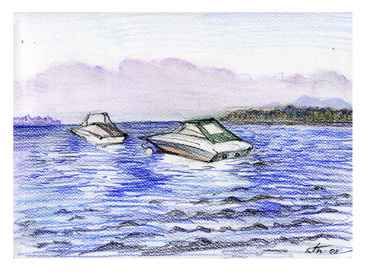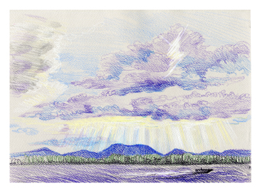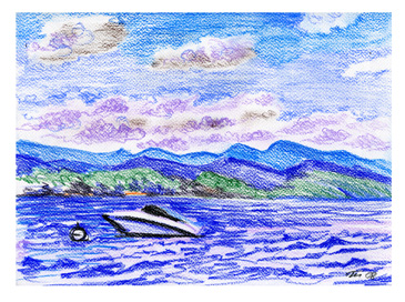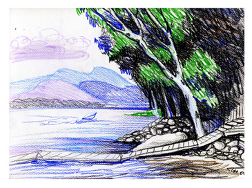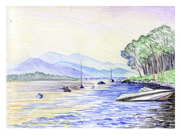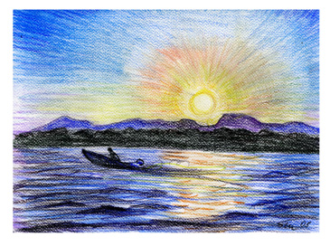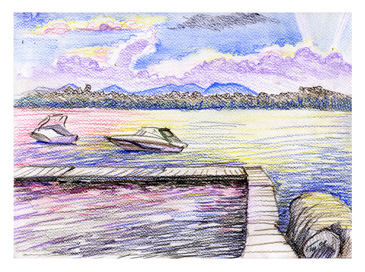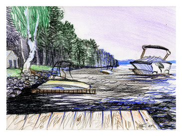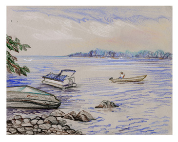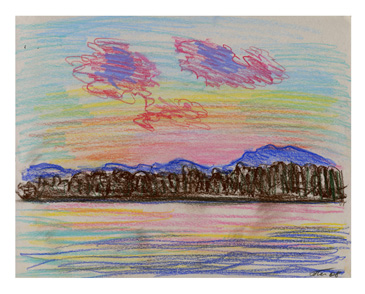 GRAPHIC WORKS - ГРАФИКА 2008-2009 A series of works "Sacandaga Lake. NY" "color paper, color pencils Из серии работ "Озеро Сакандага" цветная бумага, цветные карандаши 9 x11" (23 x 28 cm)